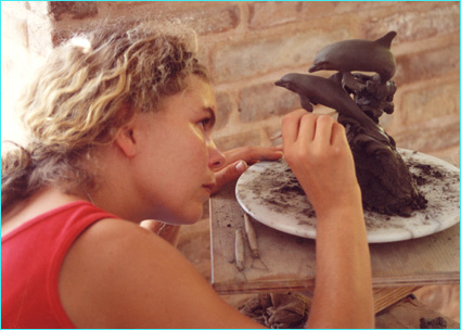 Modellare con l'argilla per la preparazione della Terra Cotta Il soggetto che avrete modellato e accuratamente essiccato in preparazione per la cottura al forno, potrá essere spedito alla vostra destinazione. Possono partecipare anche i Bambini da 10 anni in su, (prezzo ridotto)